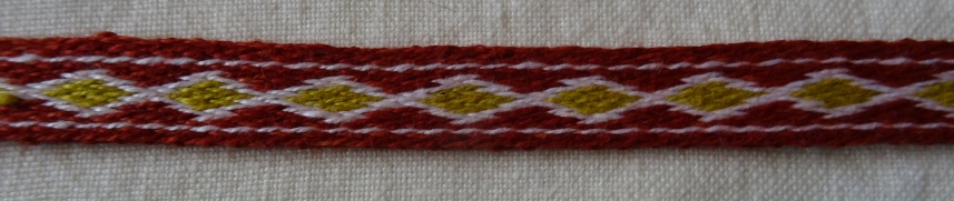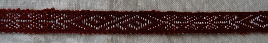 Band in Madder dyed wool with silk brocade based on Viking band from Birka - £40.00 per metre
