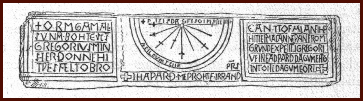 It is remarkably well preserved as it was covered with plaster for several centuries and was also protected by the porch. The centre portion with the sundial has an inscription which translates as “This is the day’s sun-marker at every hour”. On either side are carved inscriptions in Old English which give information about the foundation of the church telling that it was rebuilt by Orm Gamelson, replacing an earlier church, when Tostig was Earl of Northumbria, 1055-1065.