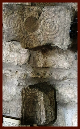 In the north aisle are remains of carved masonry with spiral designs, including parts of Saxon crosses. The Archer stone has part of a carved bow, and may have been part of a tombstone of a medieval huntsman.